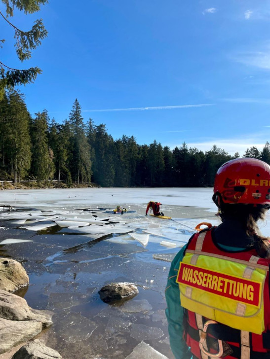 Gemeinsam mit Einsatzkräften aus Gaggenau, Gernsbach, Bühl und Achern übten wir am vergangenen Samstag die Rettung auf, am und im zugefrorenen Mummelsee. Nach einer kurzen Theorieeinheit über die verschiedenen Eisarten teilte sich die Gruppe für die Eisrettung und das Eistauchen auf. Da das Eis in der Seemitte trotz frühlingshafter Temperaturen noch zu stabil für ein Eisunfallszenario war, mussten zu Beginn Löcher in die Eisfläche gesägt werden, um eine optimale Übungssituation zu schaffen. Um ein Gefühl dafür zu bekommen, wie es ist, ins Eis einzubrechen, konnten die Einsatzkräfte dies zunächst am eigenen Körper spüren und versuchen, sich aus eigener Kraft wieder daraus zu befreien. Mit einem speziellen Eisrettungsschlitten sowie einem Spineboard trainierten die Strömungsr ... Mehr erfahren